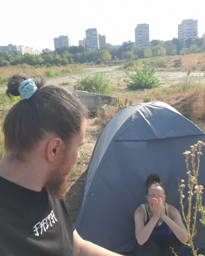 - Intrăm și ieșim din cort la 10, 11 seara, simțim cum corpurile (mintea?) se dilată, accelerând tandrețe. Avem o pădure în oraș, înfiorată de gușteri și greieri. Avem o pădure în oraș, repetă(m).