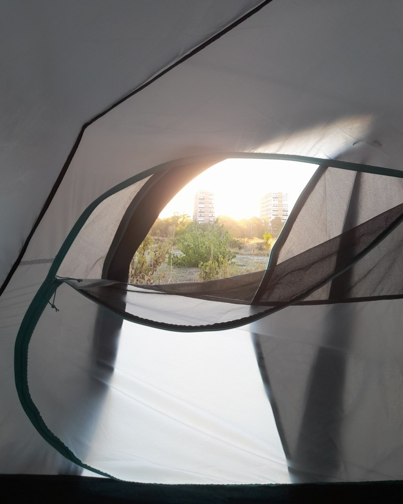 Lanterna pâlpâie în tavanul căsuței-noastre cort. Orașul e cuprins de parcul-pădure, sunt sigură că ne mințim dacă spunem că nu se mai poate face nimic pentru natura asta. Lipsește doar s-o lăsați în pace (“Natura lăsată de capul ei este o natură care se reîmpădurește spontan.”, după Ernst Zürcher). Totul trăiește, e demn și așteaptă explorarea la pas. Chiar și noaptea, din somn, în mijlocul teritoriului de aici, cum am ales noi să o facem.